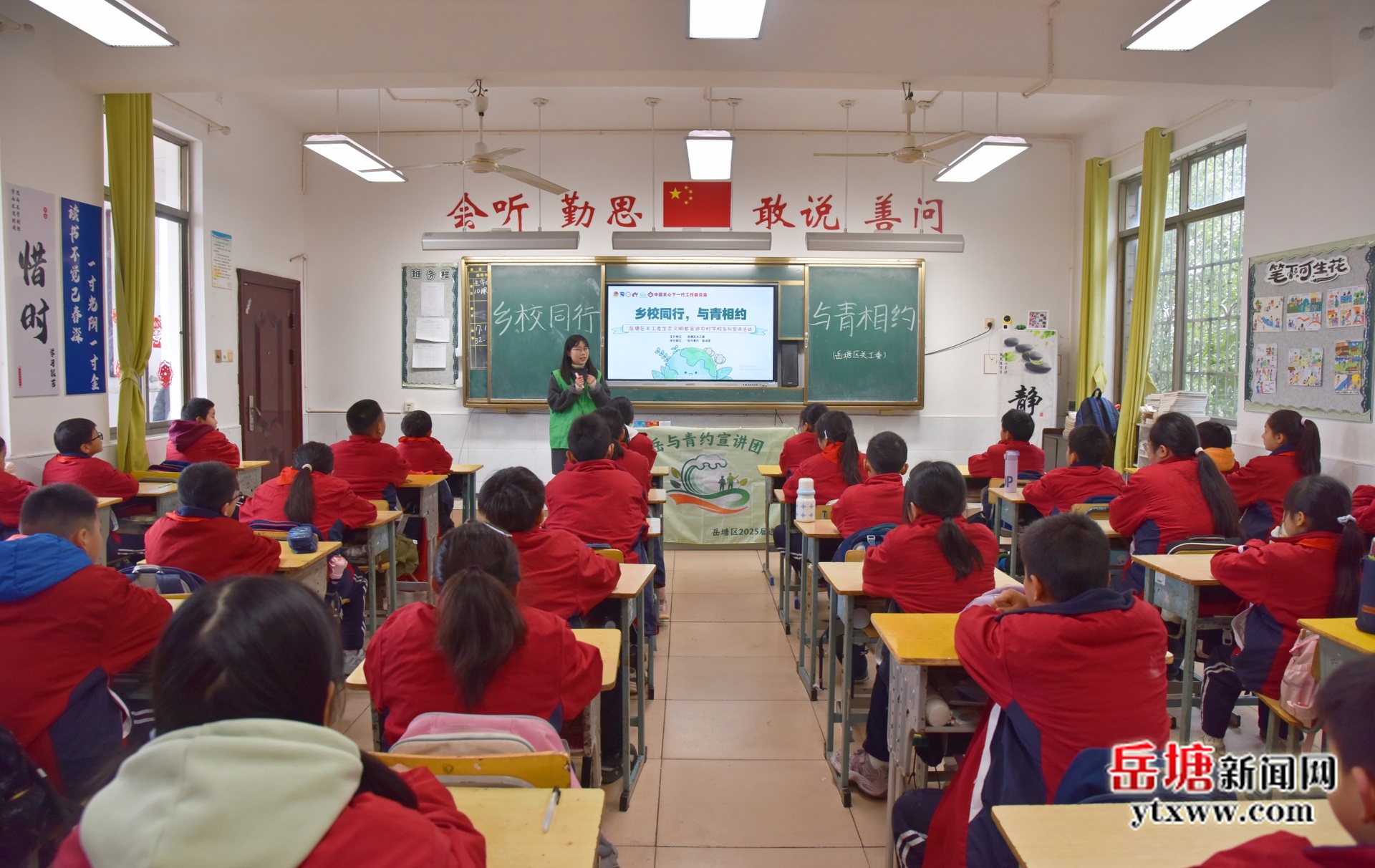 岳塘融媒12月22日訊(記者 朱維)12月22日,岳塘區(qū)關(guān)工委攜手“岳與青約”宣講團(tuán)走進(jìn)紅霞小學(xué)開展“生態(tài)文明教育進(jìn)鄉(xiāng)?!被顒?dòng),以“鄉(xiāng)校同行,與青相約”為主題,為該校五年級(jí)74班40余名師生帶來(lái)一場(chǎng)環(huán)保知識(shí)盛宴。