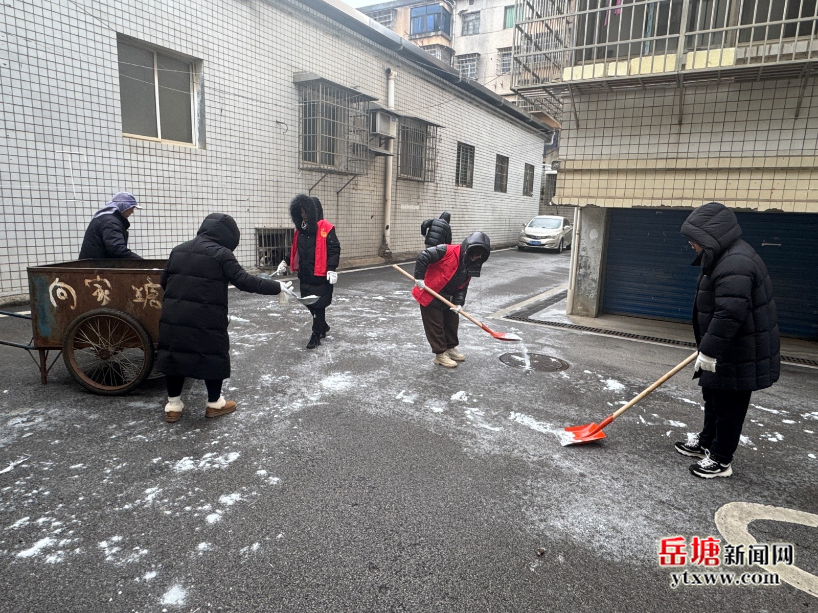 岳塘融媒1月21日訊(通訊員:汪佳琪)連日來,受強(qiáng)冷空氣與降雪天氣影響,岳塘區(qū)霞城街道向家塘社區(qū)轄區(qū)內(nèi)主干道、小區(qū)出入口、人行坡道等區(qū)域出現(xiàn)不同程度的積雪結(jié)冰,濕滑路面給居民尤其是老年群體出行帶來極大安全隱患。雪情就是命令,民生就是責(zé)任。向家塘社區(qū)迅速響應(yīng)、緊急部署,第一時(shí)間啟動(dòng)冬季應(yīng)急處置預(yù)案,組織社區(qū)黨員、志愿者,物業(yè)及工作人員組成“除冰保暢先鋒隊(duì)”,開展全方位撒鹽除冰行動(dòng),用實(shí)干與溫情為居民開辟安全通行通道。