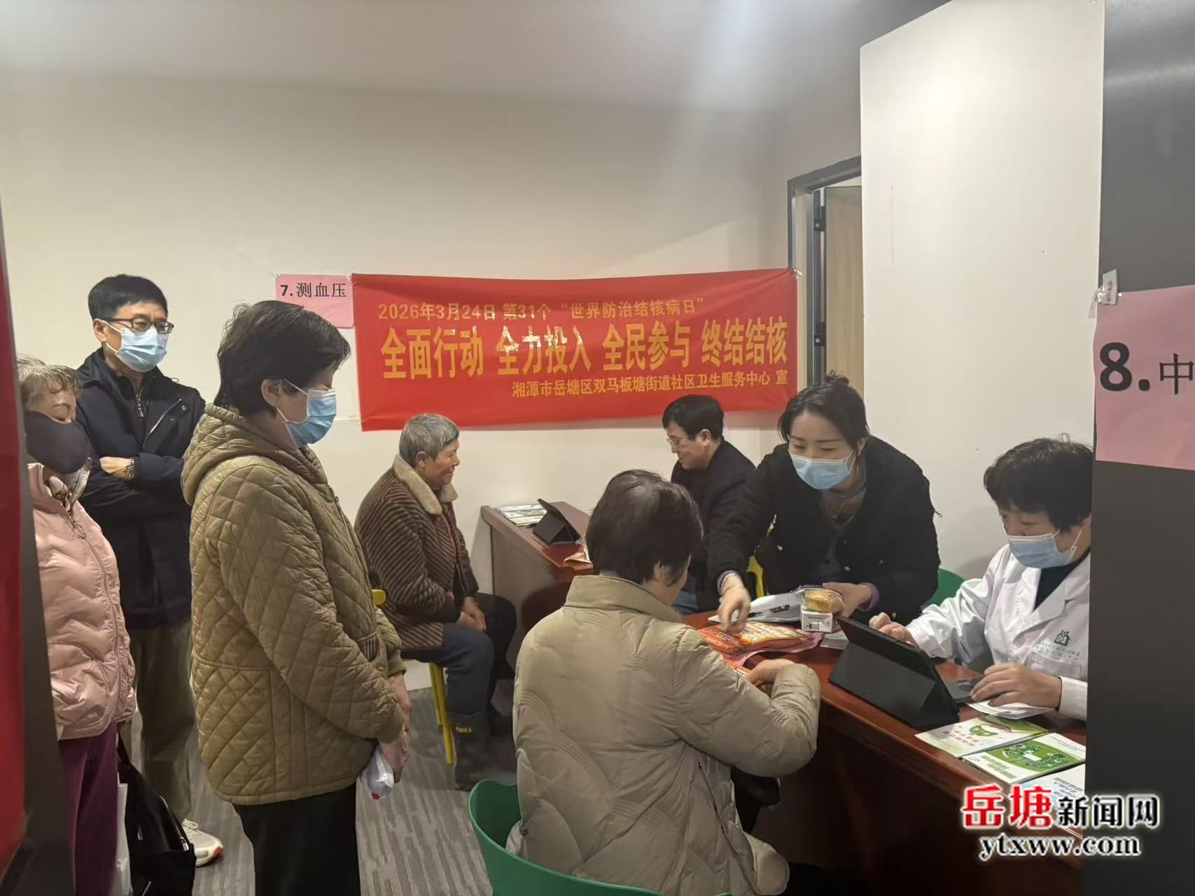 岳塘融媒3月24日訊(通訊員:陳芳妮)2026年3月24日是第31個世界防治結(jié)核病日。雙馬板塘街道社區(qū)衛(wèi)生服務(wù)中心緊扣“全面行動 全力投入 全民參與 終結(jié)結(jié)核”主題,開展結(jié)核病防治宣傳服務(wù)活動。
